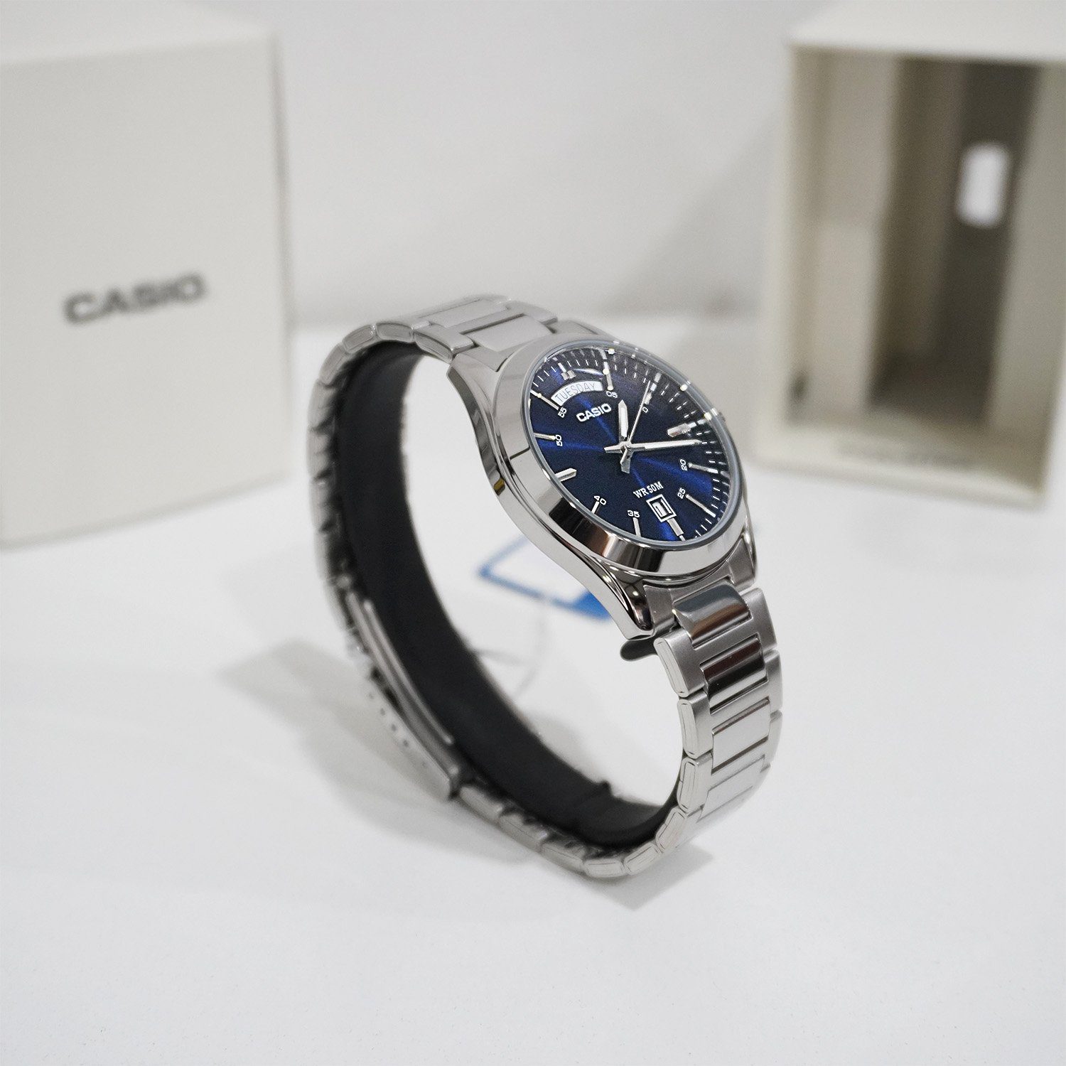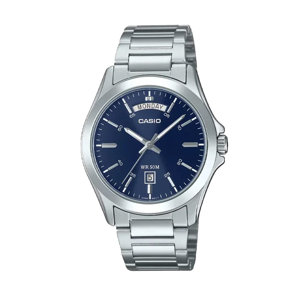 ساعت مچی مردانه کاسیو با صفحه آبی و بند استیل مدل Casio-MTP-1370D-2A2
